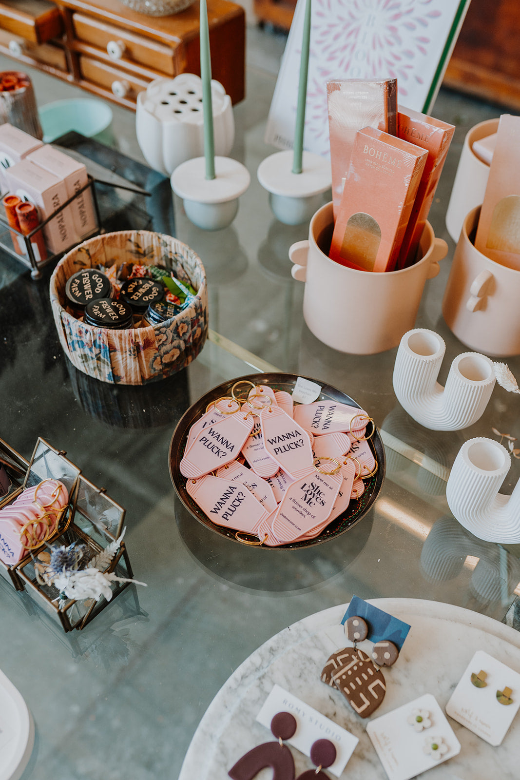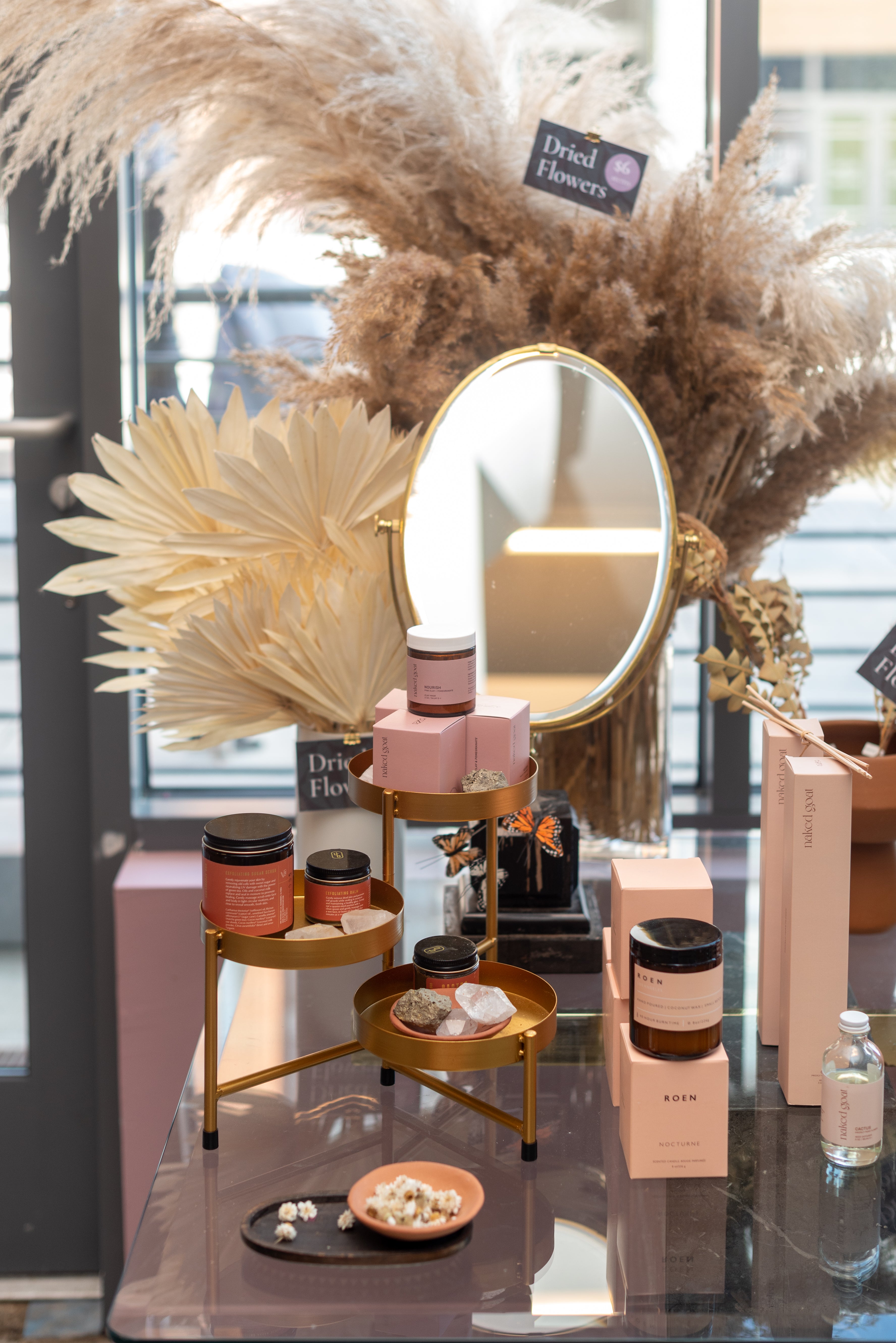 You never know what you'll encounter at our charming flower shop and working design studio! On any given day it's bustling with florists preparing delightful petite wrapped bouquets, restocking our dried flower bar, or preparing for a big wedding. Shop handcrafted cards and artisanal candles poured in-studio.