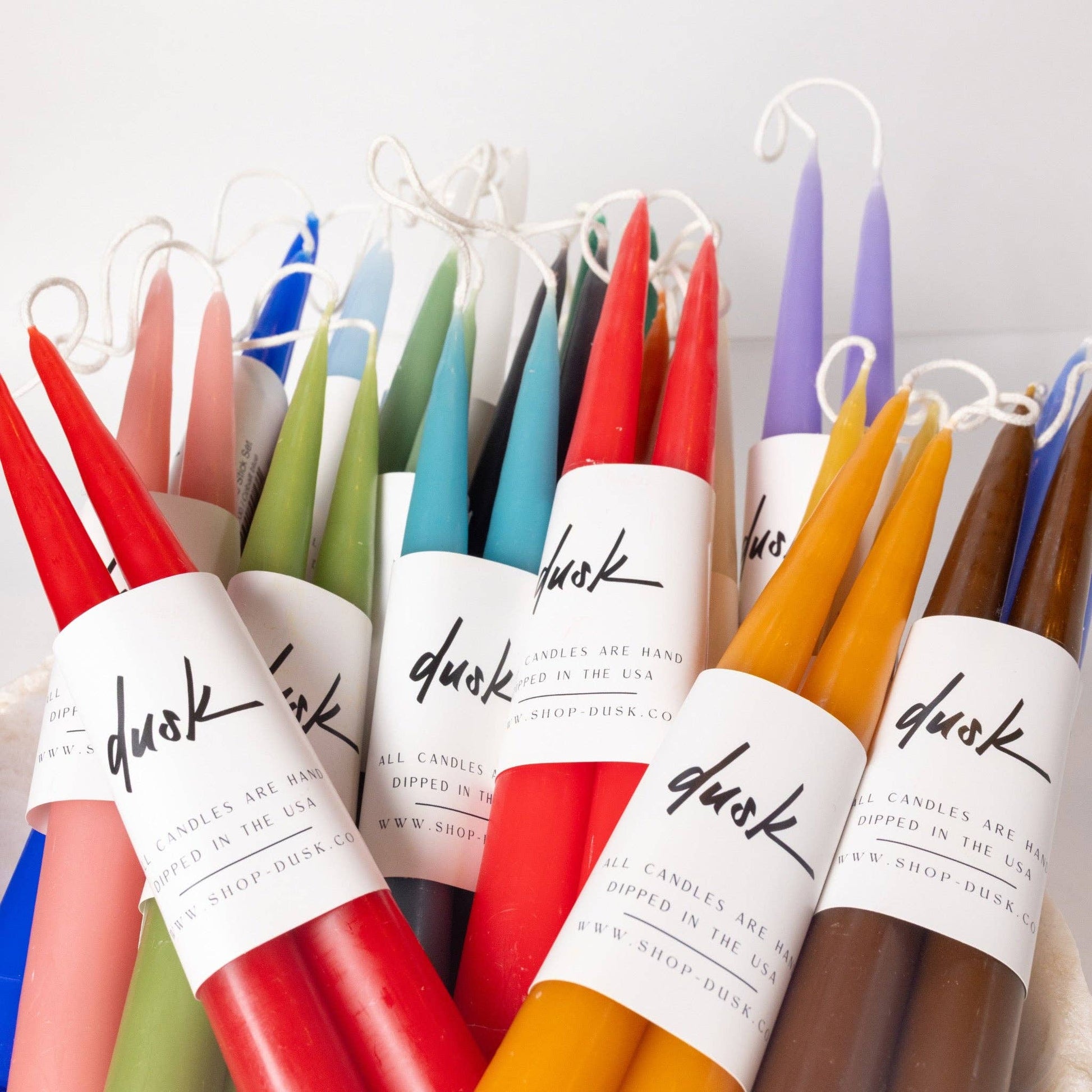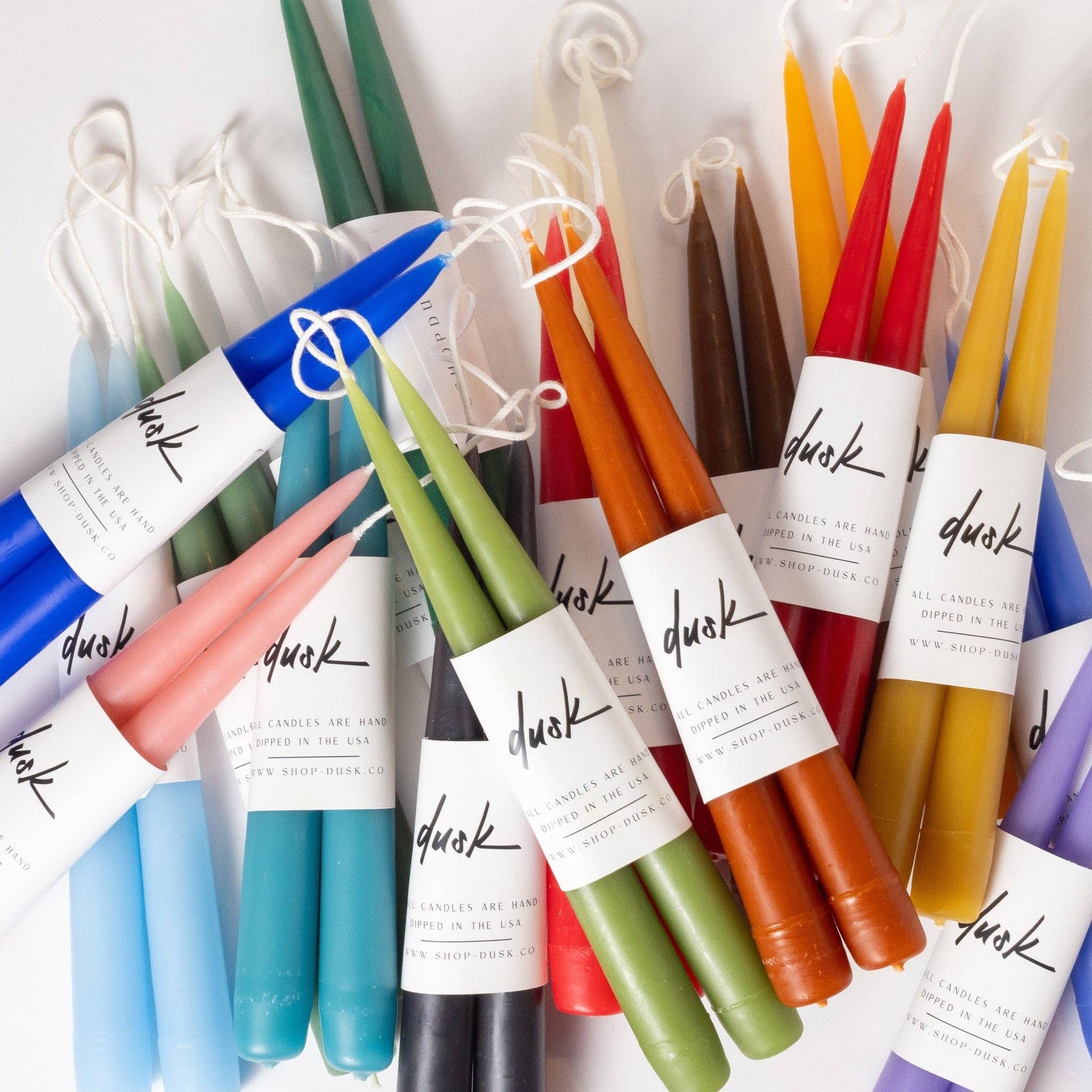 Hand dipped 9 inch inch long taper candle stick set (connected by the wick)